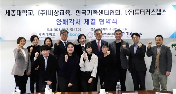 [디지털비즈온 이은광 기자] 세종대학교(총장 배덕효)는 지난 12월 7일 ㈜비상교육, 한국가족센터협회, ㈜튜터러스랩스와 업무협약을 체결했다.
