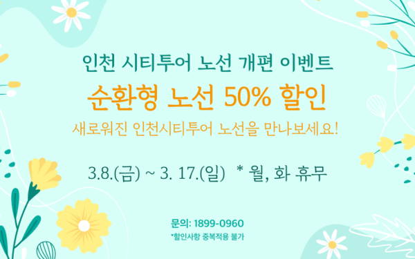 이외에도 새롭게 바뀌는 인천시티투어버스의 랩핑에 맞춰 ‘새 옷 입은 인천시티투어 입소문 이벤트’, ‘봄기운 가득 춘분 이벤트’, ‘한국관광공사 여행가는 달 연계 이벤트’ 등 다양한 프로모션을 추진한다.