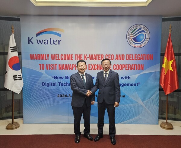 윤석대 한국수자원공사 사장은 3월 15일 베트남 하노이 현지에서 열린 국제 물 콘퍼런스에서 베트남 자원환경부 산하 정부기관인 수자원계획·조사센터(National Center for Water Resources Planning and Investigation)와 기후위기 대응 물 분야 파트너십 강화 및 디지털 물관리 기술 협력·지원을 위한 업무협약을 체결했다.