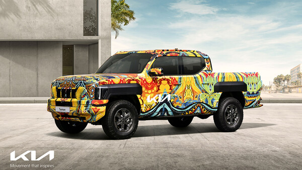 기아는 ‘미처 가보지 못한 길(The Paths Never Taken)’을 주제로 호주ᆞ뉴질랜드의 유명 아티스트 리처드 보이드 던롭(Richard Boyd-Dunlop)과 협업해 타스만의 위장막 디자인을 개발했다.