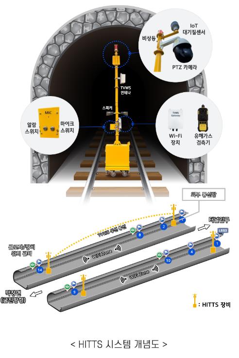 HITTS는 TV 방송용 주파수 대역 중 누구나 사용이 가능한 유휴대역(TVWS: TV White Space)을 활용해 터널 및 지하 전 구간에서 Wi-Fi 무선 통신이 가능토록 한 시스템을 적용한것이다.