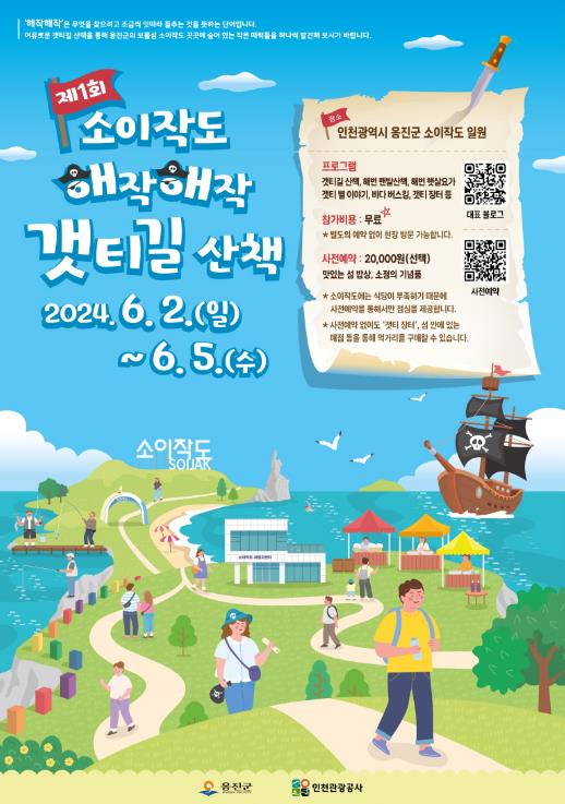 [디지털비즈온 이은광 기자] 인천관광공사(사장 백현)와 옹진군(군수 문경복)은 6월 2일(일)부터 5일(수)까지 4일간 옹진군 소이작도에서 제1회 ‘소이작도 해작해작 갯티길 산책’을 개최한다고 밝혔다.