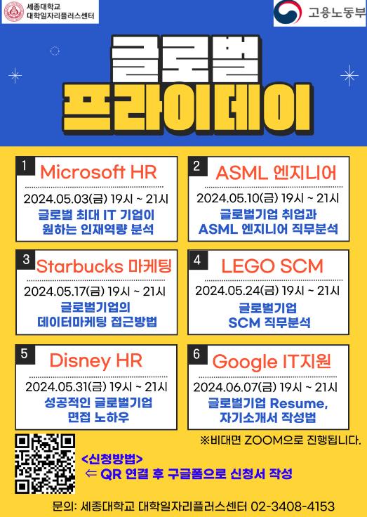 보다 자세한 내용은 세종대학교 대학일자리플러스센터로 문의하면 된다.