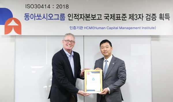 동아쏘시오홀딩스(대표이사 사장 정재훈)는 동아쏘시오그룹이 미국 인적자원 분석 전문 기업 HCMI로부터 인적자본보고시스템 ‘ISO 30414’ 3자 검증을 획득했다고 8일 밝혔다. 국내 기업 중 ISO 30414검증을 받은 것은 동아쏘시오그룹이 최초이다.