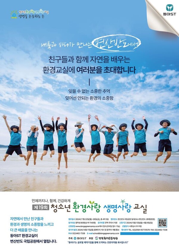 [디지털비즈온 이현주 기자] 동아에스티(대표이사 사장 김민영)는 ‘제19회 청소년 환경사랑 생명사랑 교실’ 참가자를 내달 9일까지 모집한다고 밝혔다.
