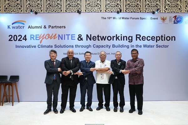 한국수자원공사(K-water, 윤석대)는 5월 20일 인도네시아 발리 현지에서 인도네시아, 캄보디아, 필리핀 등 장·차관급 고위 관계자 및 국제투자기관 파트너들을 초청해 ‘2024 K-water Alumni & Global Partners Networking Reception’ 행사를 개최했다.