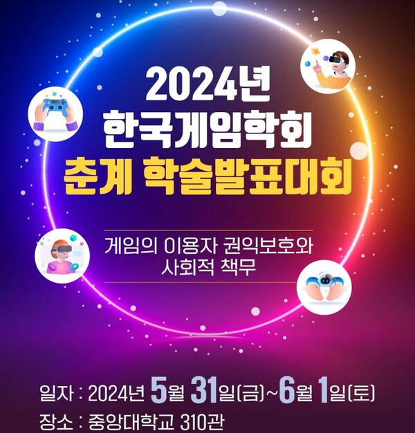 [디지털비즈온 이은광 기자] 사단법인 한국게임학회(회장:위정현/중앙대 가상융합대학장)에서는 5 월 31 일(금) ~ 6 월 1 일(토) 중앙대학교에서 ‘게임의 이용자 권익보호와 사회적 책무’를 주제로 2024 한국게임학회 춘계학술발표대회를 개최한다.