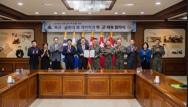 이번 협약은 지난 2023년 12월 안정적인 사이버 전문인력 충원을 위한 “24년 군 계약학과 확대추진 결정“을 통해 시작됐다. 올해 3월 사이버 관련 학과와 학군단을 동시에 보유한 4년제 대학을 대상으로 공개모집해 세종대(정보보호학과)가 최종 선정됐으며 향후 세종대 사이버 국방학과 졸업생 전원은 육군 사이버 전문사관으로 임관할 수 있게 된다.