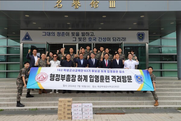 [디지털비즈온 이현주 기자] 세종대학교(총장 배덕효)와 ROTC 동문회가 7월 10일 충청북도 괴산 육군학생군사학교를 방문해 입영 훈련 중인 ROTC 후보생을 격려했다.