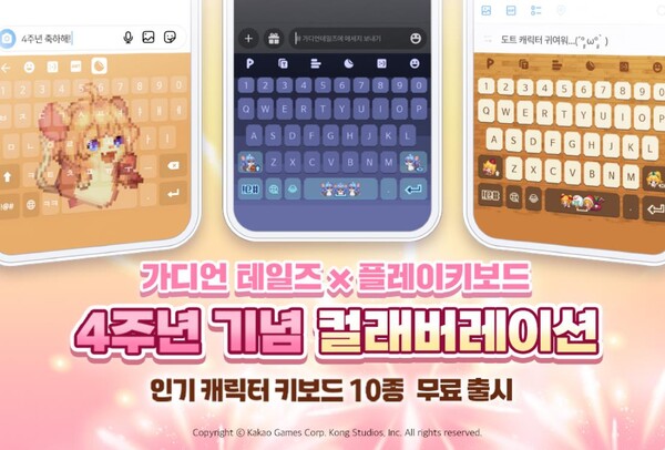 [디지털비즈온 이현주 기자] 카카오게임즈(대표 한상우)는 18일, 미국 개발사 콩 스튜디오(대표 원(Won))가 개발한 모바일 RPG ‘가디언 테일즈’의 서비스 4주년을 맞아 ‘플레이키보드’ 운영사 ㈜비트바이트와 글로벌 컬래버레이션 키보드 테마를 출시했다고 밝혔다.