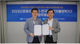 [디지털비즈온 이현주 기자] 인터넷신문윤리위원회(위원장 이재진, 이하 인신윤위)와 한국인터넷자율정책기구(의장 이인호, 이하 KISO(키소))는 26일 ‘인터넷공간에서 콘텐츠 건강성 확보와 이용자 편익증대를 위한 업무협약’을 맺었다.
