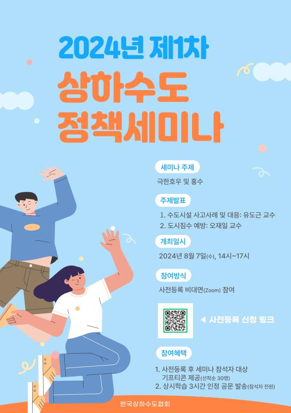 수원대학교 유도근 교수와 중앙대학교 오재일 교수가 전문가 주제 발표자로 참여해 ‘수도시설 사고사례 및 대응’, ‘도시침수 예방’에 대한 구체적인 현황과 사례를 제시한다.
