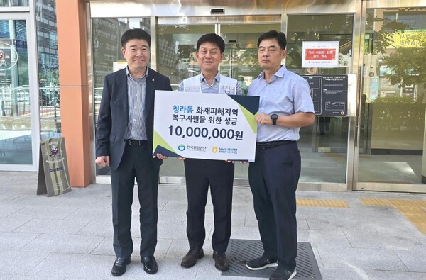 안병옥 한국환경공단 이사장은 “최근 발생한 화재로 피해를 입은 모든 분에게 깊은 위로를 전하며, 성금과 지원이 주민들의 조속한 일상생활 회복에 보탬이 되길 희망한다”고 말했다.
