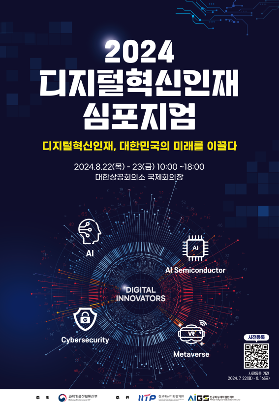 과학기술정보통신부(장관 유상임, 이하 ‘과기정통부’)는 8.22(목)~23(금) 이틀간 대한상공회의소에서 「2024 디지털혁신인재 학술토론회」를 개최한다고 밝혔다.