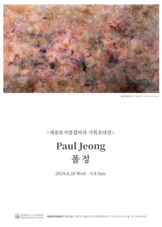 폴 정 작가는 29회의 개인전을 비롯해 350여 회의 단체전에 참여했고, 국립 현대미술관 외 20개 공공기관에서 그의 작품을 소장하고 있다. 8월 28일부터 9월 8일까지 세종대학교 내 세종뮤지엄갤러리 2관에서 개최되는 이번 전시는 ‘신화 - 기억의 소리’ 라는 주제로 무의식 세계의 익숙한 장면들의 편린을 담은 작품 50여 점이 전시된다.