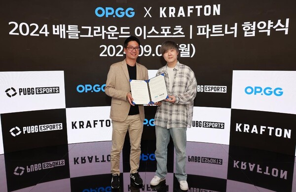 [디지털비즈온 이현주 기자] 크래프톤(대표 김창한)이 글로벌 게임 데이터 플랫폼 오피지지(OP.GG)와 PUBG: 배틀그라운드(이하 배틀그라운드) e스포츠 파트너십을 위한 협약식을 체결했다.