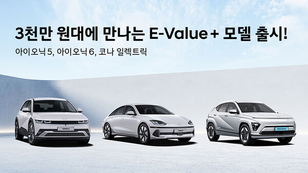 현대자동차가 3천만 원대로 구매 가능한 아이오닉 5, 아이오닉 6, 코나 일렉트릭의 ‘E-Value +(이-밸류 플러스) 트림’을 3일(화) 론칭했다.