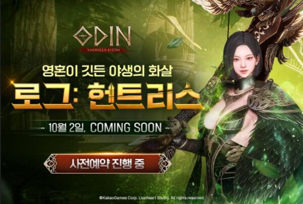 [디지털비즈온 이현주 기자] 카카오게임즈(대표 한상우)는 20일, 라이온하트 스튜디오(의장 김재영)가 개발한 대작 MMORPG ‘오딘: 발할라 라이징(이하 ‘오딘’)’의 신규 전직 클래스 ‘헌트리스’ 사전 등록을 실시하고 시네마틱 영상을 공개했다.