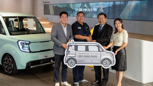 기아 노사는 26일(목) 서울 압구정 소재 브랜드 체험관인 ‘Kia360’에서 국내오너십사업부장 최진기 상무, 문은주 정비지회장, 김성이 한국사회복지협의회장, 유진희 한국사회복지협의회 나눔사업추진단장 등이 참석한 가운데 차량 및 장학금 전달식을 갖고 사회복지시설 및 교육기관에 레이 복지 차량과 장학금을 지원한다고 27일(금) 밝혔다.