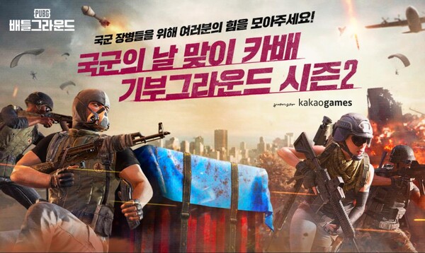 [디지털비즈온 이현주 기자] 카카오게임즈(대표 한상우)는 30일, ㈜크래프톤(대표 김창한) 펍지 스튜디오가 개발한 ‘카카오 배틀그라운드’에 국군의 날을 기념해 ‘카배 기부그라운드 이벤트 시즌 2’를 진행한다.