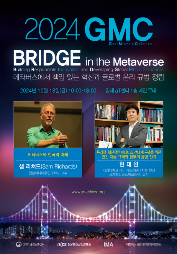 [디지털비즈온 곽중근 기자] 과학기술정보통신부(장관 유상임, 이하 ‘과기정통부’)와 정보통신산업진흥원(원장 허성욱, 이하 ‘NIPA’) 및 국제 가상융합세계(메타버스) 학회(회장 현대원, 이하 ‘IMA’)는 10월 18일(금), 서울 양재 aT센터에서 2024 국제 가상융합세계 학술회의(Global Metaverse Conference, 이하 ‘2024 GMC’)를 성공적으로 개최했다고 밝혔다.