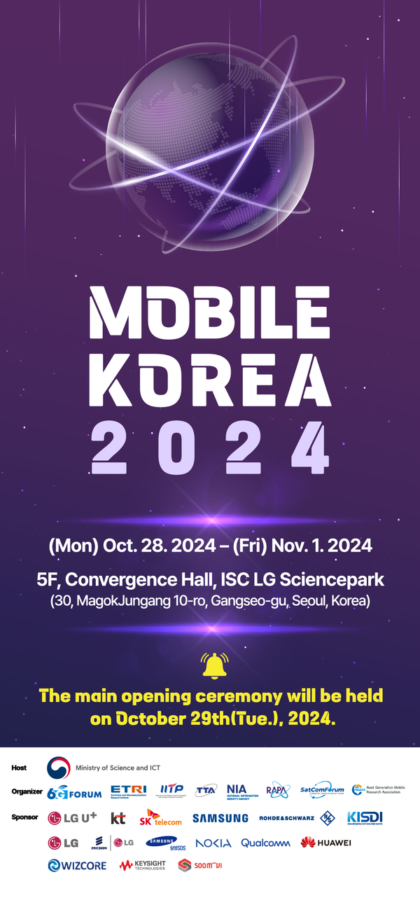 과학기술정보통신부(장관 유상임, 이하 ‘과기정통부’)는 10월 28일(월)부터 11월 1일(금)까지 5일간 LG 사이언스 파크(서울 강서구)에서 「모바일 한국 2024」를 개최한다고 밝혔다.