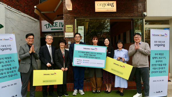 기아가 교통약자의 이동 편의와 접근성 향상을 위한 '웰컴휠(Welcome wheel) 캠페인'을 진행하고 서울 종로구 카페 'Ongoing'에서 이동식 경사로 전달식을 개최했다고 30일(수) 밝혔다.
