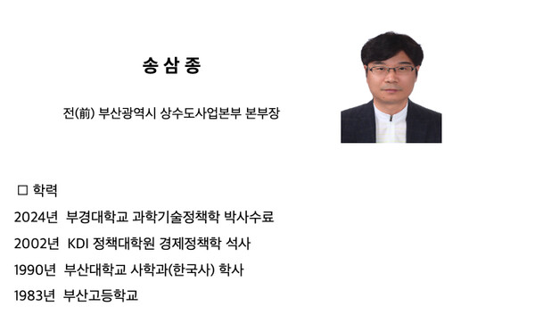 과학기술정보통신부(장관 유상임, 이하 ‘과기정통부’)는 국립부산과학관의 제4대 신임 관장으로 송삼종 전(前) 부산광역시 상수도사업본부 본부장을 11월 5일자로 임명한다고 밝혔다.