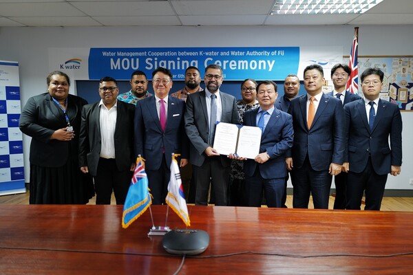 한국수자원공사(K-water, 사장 윤석대)가 첨단 물관리 기술을 바탕으로 태평양 도서국과 활발한 교류를 이어간다. 한국수자원공사는 11월 6일 피지 수도 수바 현지에서 혼. 빌리아메 가보카(Hon. Viliame Gavoka) 피지 부총리와 면담에서 피지 물 문제 해결을 위한 국가 차원의 지원 협의에 이어, 피지 수자원공사(Water Authority of Fiji)와 ‘피지 수자원 관리 및 인프라 개발 분야 협력 강화를 위한 업무협약’을 체결했다. 태평양도서국 중 하나인 피지는 약 330개의 화산섬 등으로 이뤄진 도서국으로 유엔(UN) 태평양사무소 등이 위치하며 세계 각국과 교류를 확대하고 있는 국가이다. 14개 도서국의 교통 및 경제 허브 역할을 하는 중심국으로 전략적 요충지이기도 하다. 이번 협약은 올해 9월 피지 수자원공사가 우리나라 외교부를 통해 물분야 협력을 요청함에 따라 마련되었다. 협약 주요 내용은 ▲ 기술 전문성 분야 협력 강화 ▲ 수자원 관리 및 지속가능성 해결책 모색 협력 ▲ 인적 자원 교류 및 개발 등이다. 피지 수자원공사는 피지 상·하수도 운영관리를 주요 목적으로 설립된 공공기관으로, 수도관 노후화로 인한 누수 과다와 관광지 인구 증가에 따른 물 부족으로 어려움을 겪고 있어 한국수자원공사에 스마트 관망관리(SWNM) 기술과 같은 우수한 물관리 기술의 전수를 요청하였다. 한국수자원공사는 이번 협약을 통해 피지의 근본적인 물 문제 해결을 위해 현지 기술 진단 및 인력양성 교육 등의 협력을 추진할 계획이다. 김진형 주피지 대한민국대사는 “피지의 물 문제 해결을 위해 한국수자원공사와 함께 최대한 지원을 아끼지 않을 것이며, 이러한 지원은 매년 협상이 필요한 태평양도서국과 입어 협상에도 긍정적인 효과를 보일 것으로 예상되어 국내 수산업 활성화와 국내 기업 해외 진출 확대의 교두보가 될 것”이라고 밝혔다. 윤석대 한국수자원공사 사장은 “물관리 디지털 전환이 가속화되는 가운데, 첨단 기술이 집약된 공사의 초격차 물기술은 세계 각국의 실질적 물문제 해법으로 많은 주목을 받고 있다”라며, “이번 협약을 비롯해 앞으로도 다양한 국가와 물 분야 협력을 넓혀 우리나라 외교 협력의 중추가 될 수 있도록 최선을 다할 것”이라고 밝혔다. |