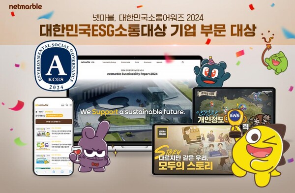 이 외에도 넷마블은 지난 10월 발표된 한국ESG기준원(KCGS)의 2024년 ESG 종합평가에서 A등급을 획득하며, 지역사회와의 상생, 구성원 및 다양한 이해관계자 대상 사회적 가치를 제고하기 위한 진정성 있는 ESG 경영활동의 성과를 인정받았다.