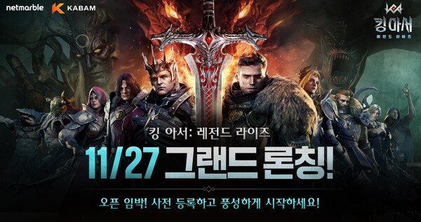 넷마블은 북미 자회사 카밤에서 개발 중인 신작 <킹 아서: 레전드 라이즈>의 출시일을 11월 27일로 확정하고 론칭 티저 영상을 공개했다고 밝혔다.