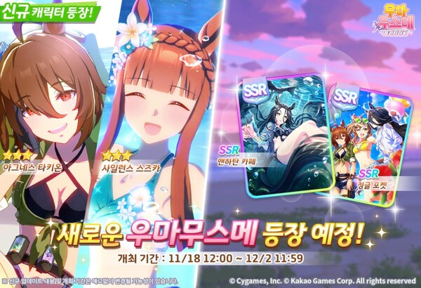 이번 업데이트에서는 서포트 카드 2종 ‘SSR [너와 함께 보는 물거품] 맨하탄 카페’와 ‘SSR [날려 버리자 핫 서머!] 정글 포켓’도 추가해 육성의 재미를 더했다.