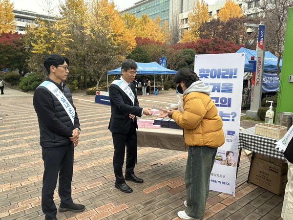 한국수력원자력(사장 황주호, 이하 한수원) 임직원들이 20일 서울 숙명여자대학교 캠퍼스에서 ‘겨울철 에너지절약 캠페인’을 펼쳤다.