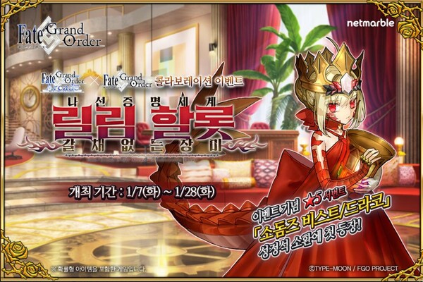 넷마블(대표 권영식, 김병규)은 모바일 RPG <페이트/그랜드 오더>에서 <페이트/그랜드 오더 아케이드(Fate/Grand Order Arcade)>와의 콜라보레이션 이벤트를 오는 1월 28일까지 진행한다.
