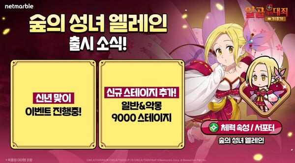 넷마블(대표 권영식, 김병규)은 모바일 캐주얼 RPG <일곱 개의 대죄 키우기(개발사 넷마블에프앤씨)>에 신규 캐릭터 ‘숲의 성녀 엘레인’을 추가하는 등 업데이트를 진행했다고 17일 밝혔다.