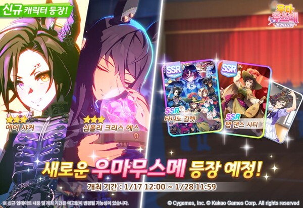 더불어 오는 1월 23일부터 26일까지 ‘키타산 블랙’에게 도전하는 ‘레전드 레이스를 개최하고, 1월 26일부터 29일까지 ‘사토노 다이아몬드’와의 레이스를 진행한다. 이용자들은 ‘국화상 교토 잔디 3000m (장거리) 시계(우) 방향│계절 (가을)’에서 진행되는 ‘레전드 우마무스메’와의 레이스에 도전하고 다양한 보상을 획득할 수 있다.
