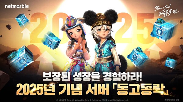 '동고동락'은 2025년 새해를 기념한 서버로, 빠른 성장을 지원하는 '장비 풀세트' 등 풍성한 혜택을 무료로 제공한다. 또한, 넷마블은 '성장 기원 신화 수호령 상자'를 통해 청사의 해를 기념하는 신화 등급 수호령 '청사'를 100% 증정하고, '고대 장비 풀세트 상자'를 포함한 6종류의 성장 기원 상자를 지급한다.