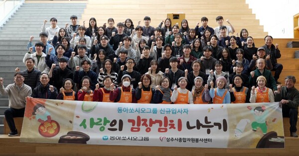동아쏘시오그룹은 신입사원 60여명이 지난 20일 경상북도 상주시에 위치한 동아쏘시오그룹 인재개발원에서 사랑의 김장 나눔 봉사활동을 진행했다고 21일 밝혔다.
