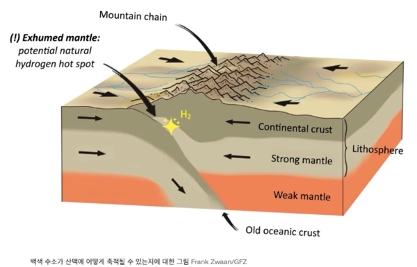 연구진은 철이 풍부한 맨틀 암석이 물과 반응하면서 화이트 수소를 생성하는 현상인 ‘뱀화/사펜타인화(Serpentization)’ 과정에 주목했다. 일반적으로 이 암석들은 지구 깊숙한 곳에 묻혀 있어 물과의 접촉이 어렵지만, 대륙 이동 과정에서 지표 가까이 올라오면 수소 생성이 활발해질 수 있다. 연구 결과, 알프스와 피레네산맥, 히말라야 일부 지역이 이러한 조건을 충족하는 것으로 나타났다.
