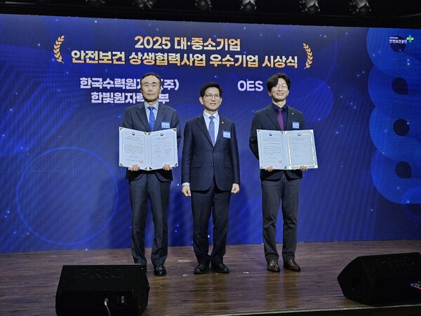 한국수력원자력(사장 황주호, 이하 한수원)이 26일 서울 은행회관에서 열린 2025년 상생협력사업 협약식에서 ‘안전보건 상생협력 우수기업’으로 선정됐다.