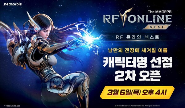 넷마블은 새해 첫 신작 ‘RF 온라인 넥스트(RF ONLINE NEXT, PC/모바일)’의 2차 캐릭터명 선점 이벤트를 오늘(6일) 오후 4시부터 진행한다고 밝혔다.