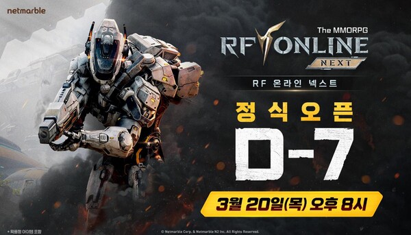 넷마블은 3월 20일 ‘RF 온라인 넥스트’ 정식 출시를 앞두고 사전등록을 진행 중이다. 공식 브랜드 사이트, 앱 마켓, 넷마블 런처 등을 통해 누구나 참여 가능하며, 사전등록 시 약 12만 원 상당의 인게임 아이템 패키지 등을 보상으로 지급한다.