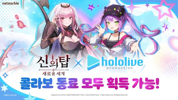 넷마블(대표 김병규)은 애니메이션 RPG <신의 탑: 새로운 세계>(개발사 넷마블엔투)에서 인기 버추얼 유튜버 그룹 ‘홀로라이브’와의 콜라보레이션 업데이트를 4월 9일 실시했다.