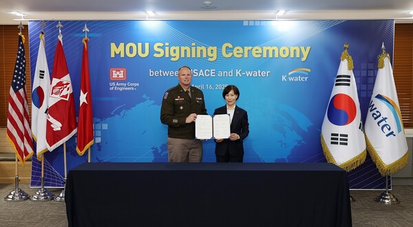 한국수자원공사(K-water)는 미육군공병단(USACE)*과 물관리 분야 국제 협력 강화를 위해 4월 16일 대전 K-water연구원에서 10년 기한의 장기 업무협약을 새롭게 체결했다. 이번 협약은 미육군공병단과 지난 2015년부터 진행해온 기술 교류 및 교육프로그램 운영 경험과 신뢰를 바탕으로, 양 기관의 협력 범위를 글로벌 수자원 사업 공동개발, 물 분야 첨단기술 개발 등으로 확대할 수 있는 안정적인 협력체계를 구축하고자 추진됐다. 이날 체결식에는 한국수자원공사 구자영 기획부문장과 미육군공병단 태평양 사령부(Pacific Ocean Division) 클리트 괴츠(Clete Goetz) 사령관(Commanding General)이 양 기관을 대표해 참석했다. 협약 주요 내용은 ▲ 아시아 지역 수자원 현안 정보공유 및 디지털 트윈(DT) 등 신기술 관련 정보 교류 ▲ 수자원 개발 및 관리 분야 혁신 기술개발 ▲ 전문 인력 및 기술 교류 ▲ 양 기관의 네트워크를 활용한 공동프로젝트 기획 및 개발 협력 ▲ 공동 연구개발을 위한 시설과 장비 공유 등이다. 한국수자원공사는 이번 협약을 글로벌 사업 확장의 교두보로 연계할 계획이다. 미육군공병단이 수행한 다양한 지역의 수자원 모델링 경험을 한국수자원공사의 물관리 디지털 트윈 기술에 접목한 수자원 관리 시스템을 개도국 등에 지원하는 데 활용한다. 또한, 양 기관의 홍수 예측모형 등을 비교·연구하여 지역 맞춤형 홍수 방지 기술개발에 협력하고, 인공지능(AI) 기반 홍수 예측 기술 교류 및 공동연구를 추진할 예정이다. 특히, 아시아 지역 내 수자원 프로젝트에 공동참여하여 정부 및 국제기구와 연계한 사업의 발굴 기회로 적극 활용하고, 이를 통해 글로벌 수자원 관리 역량을 강화함과 더불어 기후변화 대응에 있어 지속 가능한 미래를 위한 국제적 동반관계를 구축해 나갈 계획이다. 구자영 한국수자원공사 기획부문장은 “이번 협약을 통해 미육군공병단과 긴밀한 협력체계를 구축하여 글로벌 물관리 역량을 강화하고, 이를 바탕으로 전 세계 물문제 해결에 더 적극적으로 기여할 수 있는 글로벌 선두 기업으로 도약해 나가도록 최선을 다하겠다”라고 말했다. |