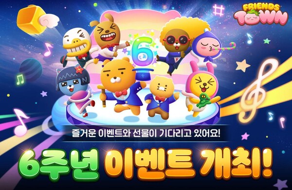 ㈜카카오게임즈(대표 한상우)는 모바일 캐주얼 게임 ‘프렌즈타운’의 출시 6주년을 기념해 다채로운 인게임 및 경품 이벤트를 실시한다고 17일 밝혔다.