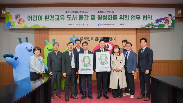 [디지털비즈온 이은광 기자] 환경부 산하 수도권매립지관리공사(사장 송병억, 이하 공사)는 SRT 운영사 국민철도 에스알(대표이사 이종국, 이하 SR)과 22일(화) 지구의 날을 맞아 ‘탄소중립’을 주제로 한 어린이 환경교육 도서 출간 및 활성화를 위한 업무협약을 맺었다고 밝혔다.
