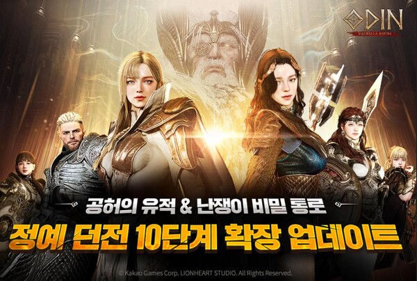 ㈜카카오게임즈(대표 한상우)는 30일, 라이온하트 스튜디오(의장 김재영)가 개발한 대작 MMORPG ‘오딘: 발할라 라이징’(이하 ‘오딘’)에 정예 던전 10단계 추가 업데이트를 진행했다고 밝혔다.