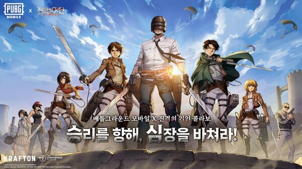 ㈜크래프톤(대표 김창한)의 배틀그라운드 모바일이 인기 애니메이션 ‘진격의 거인’과 컬래버레이션을 진행한다.