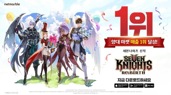 넷마블(대표 김병규)은 신작 수집형 RPG <세븐나이츠 리버스>(개발사 넷마블넥서스)가 출시 5일 만에 국내 양대 앱마켓(구글플레이, 애플앱스토어) 매출 1위를 기록했다고 19일 밝혔다.