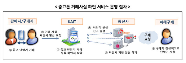 그러나 거래사실 확인서를 미리 발급받은 경우라면 부당한 분실·도난 신고로 중고폰 사용이 차단되더라도 과기정통부가 지정한 전문기관(한국정보통신협회, KAIT)을 통해 사용 차단 해제를 요청하여 중고폰을 정상적으로 이용할 수 있게 된다.